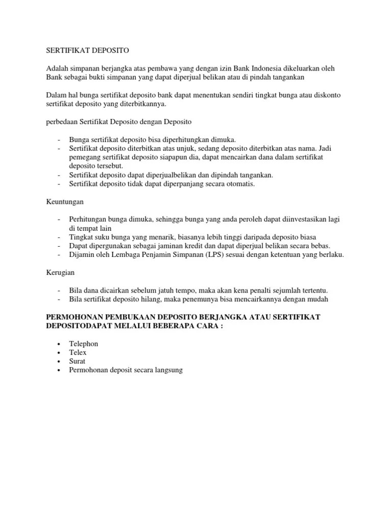 Bilyet deposito ternyata berbeda dari sertifikat deposito. Untuk deposito dengan perpanjangan secara otomatis, bank tidak menerbitkan bilyet deposito baru. Ya, dompet secara fisik tidaklah mahal namun isi dompet itu yang membuat kita super panik jika sampai kehilangan. Jika ingin mencairkannya pun harus dilakukan oleh nasabah yang mengajukan deposito. Contoh surat perjanjian adopsi anak kumpulan contoh terlengkap. Tetapi akan menjadi masalah jika kita kehilangan cek giro karena kita harus membuat surat pernyataan kehilangan dan jelas kita harus melihat contoh surat pernyataan. Berikut ulasan lengkapnya dari perbedaan hingga penipuan deposito yang perlu kamu tahu! Bilyet deposito adalah bukti kepemilikan yang diberikan bank kepada nasabah atas simpanan dalam bentuk deposito berjangka. Tidak berasal dari dan untuk pencucian uang dan/atau pendanaan. Nasabah cukup membuat laporan kehilangan di kepolisian. Portal rasmi hoshas jabatan dietetik sajian via hoshas moh gov my random image. Margasatwa no 45 aaceh timur aceh. Bilyet deposito hilang tetap aman.